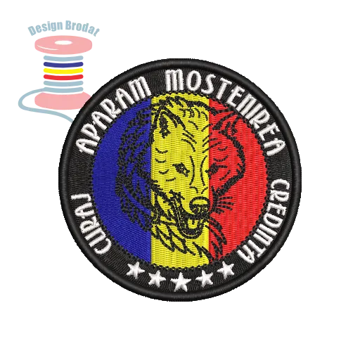 Model de broderie digitalizată reprezentând lupul dacic pe fundal tricolor, simbol al curajului și moștenirii românești. Perfect pentru patch-uri, uniforme, colecții sau accesorii tematice.